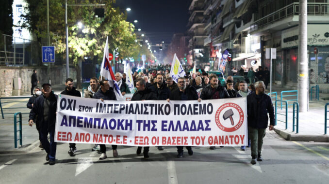 Τώρα απαιτείται ξεσηκωμός! Οι φλόγες του πολέμου είναι στη γειτονιά μας, αν δεν ξεσηκωθούμε θα έρθει η σειρά μας. Να δυναμώσει ο αγώνας, για να μπει φρένο στα σχέδια που μετατρέπουν τη χώρα σε ορμητήριο πολέμου και στόχο αντιποίνων. Να κλείσουν όλες οι ξένες στρατιωτικές βάσεις, από τη Σούδα της Κρήτης μέχρι την Αλεξανδρούπολη και τη Λάρισα, να ανακληθεί η ελληνική πυροβολαρχία Patriot από τη Σαουδική Αραβία και να επιστρέψουν πίσω όλες οι φρεγάτες του Πολεμικού Ναυτικού, τα F-16 και κάθε ελληνικό πολεμικό μέσο που βρίσκεται εκτός συνόρων.