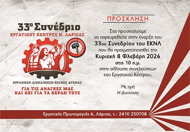 ΑΠΕΡΓΙΑΚΗ ΣΥΓΚΕΝΤΡΩΣΗ 10.30Π.Μ ΣΤΟ ΕΡΓΑΤΙΚΟ ΚΕΝΤΡΟ ΛΑΡΙΣΑΣ