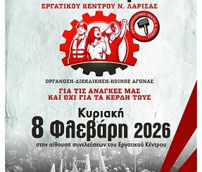 ΤΑΞΙΚΗ ΑΓΩΝΙΣΤΙΚΗ ΕΝΟΤΗΤΑ ΔΙΑΚΗΡΥΞΗ Για το 33Ο ΣΥΝΕΔΡΙΟ του ΕΡΓΑΤΟΫΠΑΛΛΗΛΙΚΟΥ ΚΕΝΤΡΟΥ Ν. ΛΑΡΙΣΑΣ Συνεχίζουμε στον ίδιο δρόμο! Στην […]